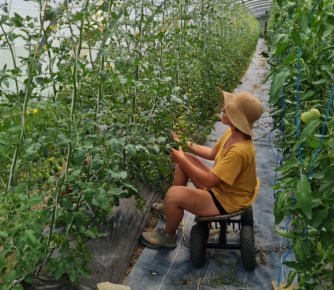 Sur la ferme de La Grenouille, il s’agit principalement de la récolte des tomates (1 serre entière à récolter) et peut également servir pour la récolte des aubergines (1 rangée).